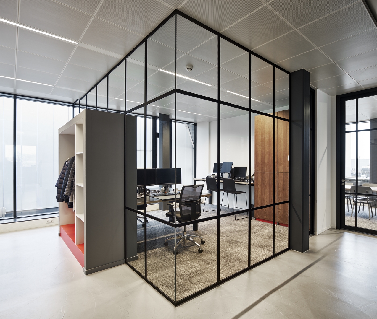 Visionraum Wand- und Türelemente werden nach höchsten Qualitätsstandards in unserem eigenen Werk in den Niederlanden gefertigt. Unsere Glas-Systemwände sind vollständig rund. Das bedeutet, dass jedes Bauteil unendlich oft wiederverwendet werden kann, bei minimalem Verlust an Rohstoffen und Qualität. Visionraum verwendet keine umweltschädlichen Materialien und produziert mit einem Minimum an Energie und Wasser, wodurch unser Produktionsprozess nachhaltig und umweltfreundlich ist.
